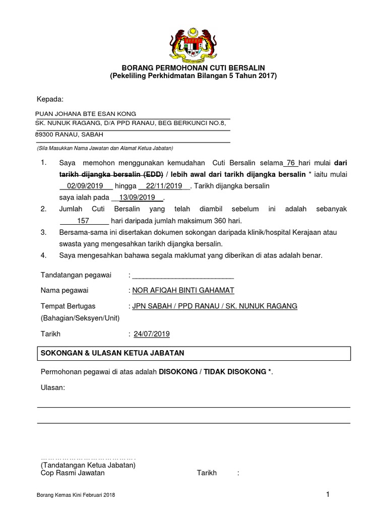 2 Agc Permohonan Cuti Bersalin Borang Kemas Kini Feb 2018 Pdf