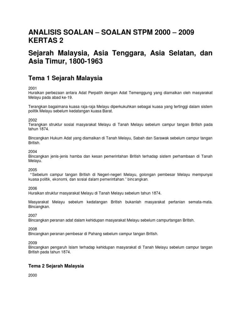 Kesan Penjajahan British Docx Penjajahan British Telah Memberi Kesan Negatif Kepada Tanah Melayu Dari Segi Politik Campur Tangan British Telah Course Hero